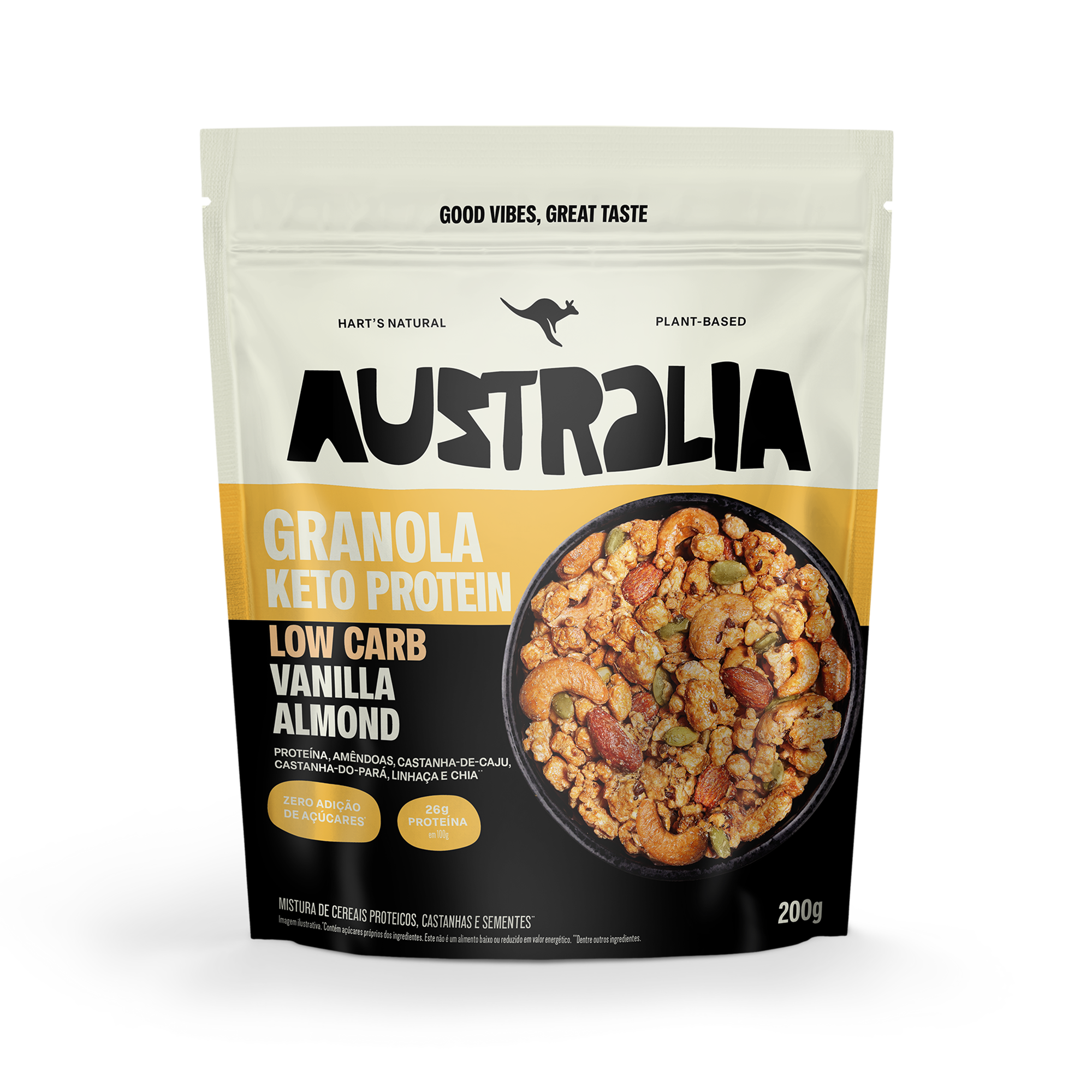 Granola com espírito da Austrália. Feita para o seu dia render. Ingredientes de verdade, origem transparente e embalagem responsável.