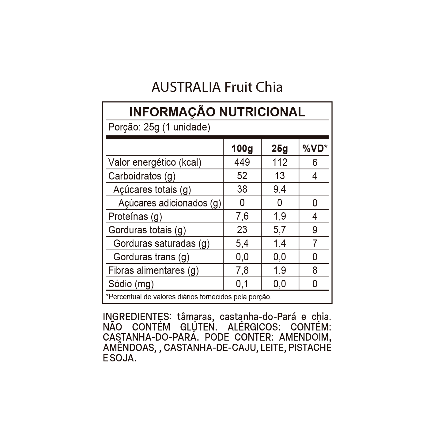 Essa barrinha é simples, direta e funcional — como deveria ser toda comida de verdade. Só 3 ingredientes: sementes de chia, tâmaras e castanha do Pará. Nada além do necessário. Nada de adoçantes, nada de "sabor natural de alguma coisa". Só plantas fazendo o que sabem fazer de melhor.